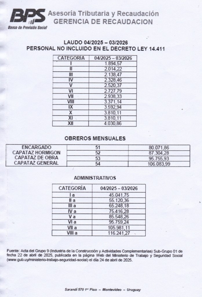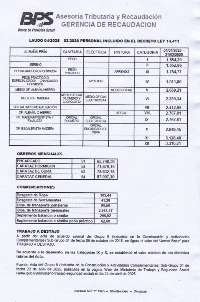 Según comunicado del Ministerio de Trabajo y Seguridad Social (MTSS) desde el 1° de abril de 2025 los trabajadores de la construcción tienen un ajuste salarial de 5.95%.